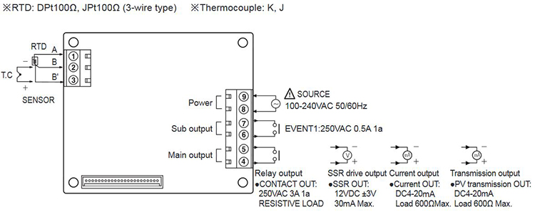 DPt100Ω [Allowable line resistance is max. 5Ω per a wire] |