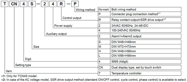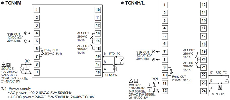 TCN Series is economical temperature controllers having dual preset indicator display to increase user convenience. The series realizes ideal temperature controlling with newly developed PID control algorithm and 100ms high speed sampling; in addition, the series allows users to take advantage of economical controlling with SSRP and relay outputs. The TCN Series is also available in low voltage models for wider user options.