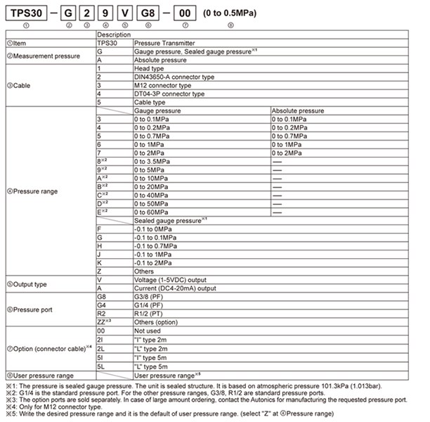 ProductAutonics TPS30-G25AG8-00 Pressure Transmitter, Gauge Pressure, DIN 43650-A Connector Type, ...Autonics TPS30-G24AG8-00 Pressure Transmitter, Gauge Pressure, DIN 43650-A Connector Type, ...Autonics TPS30-G24AR2-00 Pressure Transmitter, Gauge Pressure, DIN 43650-A Connector Type, ...Autonics TPS30-G26AG8-00 Pressure Transmitter, Gauge Pressure, DIN 43650-A Connector Type, ...Autonics TPS30-G26AR2-00 Pressure Transmitter, Gauge Pressure, DIN 43650-A Connector Type, ...Autonics TPS30-G27AG8-00 Pressure Transmitter, Gauge Pressure, DIN 43650-A Connector Type, ...Autonics TPS30-G27AR2-00 Pressure Transmitter, Gauge Pressure, DIN 43650-A Connector Type, ...Autonics TPS30-G28AG4-00 Pressure Transmitter, Gauge Pressure, DIN 43650-A Connector Type, ...Autonics TPS30-G2CAG4-00 Pressure Transmitter, Gauge Pressure, DIN 43650-A Connector Type, ...Autonics TPS30-G2DAG4-00 Pressure Transmitter, Gauge Pressure, DIN 43650-A Connector Type, ...Autonics TPS30-G2FAG4-00 Pressure Transmitter, Gauge Pressure, DIN 43650-A Connector Type, ...Autonics TPS30-G2GAG4-00 Pressure Transmitter, Gauge Pressure, DIN 43650-A Connector Type, ...Autonics TPS30-G26AG4-00 Pressure transmitter, Gauge pressure, DIN43650-A connector typeAutonics TPS30-G26AN4-00 Pressure Transmitter, Gauge Pressure, DIN 43650-A Connector Type, ...Autonics TPS30-G27AG4-00 Pressure Transmitter, Gauge Pressure, DIN 43650-AAutonics TPS30-G29AG4-00 Pressure Transmitter, Gauge Pressure, DIN 43650-A Connector Type, ...Autonics TPS30-G58AG4-00 Pressure Transmitter, Gauge Pressure, Cable Type, 0 to 3.5Mpa, 4- ...Autonics TPS30-A34AN4-00 Pressure Transmitter, Absolute Pressure, Cable M12 Connector type ...Autonics TPS30-A35AN4-00 Pressure Transmitter, Absolute Pressure, Cable M12 Connector type ...Autonics TPS30-A36AG4-00 Pressure Transmitter, Absolute Pressure, Cable M12 Connector type ...Autonics TPS30-A36AN4-00 Pressure Transmitter, Absolute Pressure, Cable M12 Connector type ...Autonics TPS30-A37AN4-00 Pressure Transmitter, Absolute Pressure, Cable M12 Connector type ...Autonics TPS30-G25AR2-00 Pressure Transmitter, Gauge Pressure, DIN 43650-A Connector Type, ...Autonics TPS30-G23AG8-00 Pressure Transmitter, Gauge Pressure, DIN 43650-A Connector Type, ...Autonics TPS30-G23AN4-00 Pressure Transmitter, Gauge Pressure, DIN 43650-A Connector Type, ...Autonics TPS30-G25AN4-00 Pressure Transmitter, Gauge Pressure, DIN 43650-A Connector Type, ...Autonics TPS30-G27AN4-00 Pressure Transmitter, Gauge Pressure, DIN 43650-A Connector Type, ...Autonics TPS30-G28AN4-00 Pressure Transmitter, Gauge Pressure, DIN 43650-A Connector Type, ...Autonics TPS30-G29AN4-00 Pressure Transmitter, Gauge Pressure, DIN 43650-A Connector Type, ...Autonics TPS30-G2AAG4-00 Pressure Transmitter, Gauge Pressure, DIN 43650-A Connector Type, ...Autonics TPS30-G2AAN4-00 Pressure Transmitter, Gauge Pressure, DIN 43650-A Connector Type, ...Autonics TPS30-G2BAG4-00 Pressure Transmitter, Gauge Pressure, DIN 43650-A Connector Type, ...Autonics TPS30-G2BAN4-00 Pressure Transmitter, Gauge Pressure, DIN 43650-A Connector Type, ...Autonics TPS30-G2CAN4-00 Pressure Transmitter, Gauge Pressure, DIN 43650-A Connector Type, ...Autonics TPS30-G2DAN4-00 Pressure Transmitter, Gauge Pressure, DIN 43650-A Connector Type, ...Autonics TPS30-G2EAG4-00 Pressure Transmitter, Gauge Pressure, DIN 43650-A Connector Type, ...Autonics TPS30-G2EAN4-00 Pressure Transmitter, Gauge Pressure, DIN 43650-A Connector Type, ...Autonics TPS30-G2FAN4-00 Pressure Transmitter, Gauge Pressure, DIN 43650-A Connector Type, ...Autonics TPS30-G54AR2-00 Pressure Transmitter, Gauge Pressure, Cable type, 0 to 0.2Mpa, Cu ...Autonics TPS30-G56AG4-00 Pressure Transmitter, Gauge Pressure, Cable Type, 0 to 1Mpa, 4-20 ...Autonics TPS30-G56AG8-00 Pressure Transmitter, Gauge Pressure, Cable Type, 0 to 1Mpa, 4-20 ...Autonics TPS30-G56VG4-00 Pressure Transmitter, Gauge Pressure, Cable Type, 0 to 1Mpa, 1-5 ...Autonics TPS30-G57AN4-00 Pressure Transmitter, Gauge Pressure, Cable Type, 0 to 2Mpa, 4-20 ...