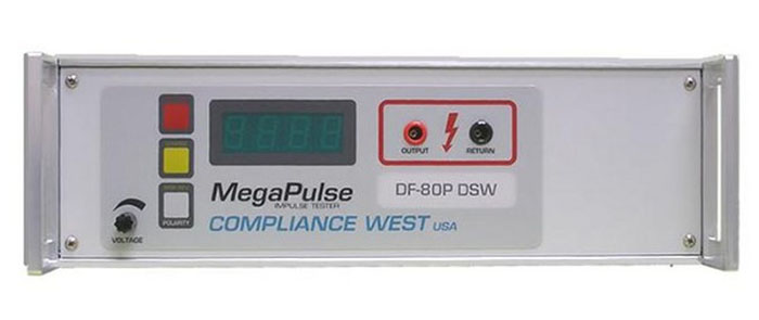 The MegaPulse DF-80 DSW Surge Tester is designed to conduct the test shown in AAMI DF80, App. DD, Table US.DD.1 and Figure US.DD.1 - Damped sinusoidal waveform parameters. The resulting waveform is in accordance with those requirements. The DF-80P DSW is built with 50 ohms output impedance. If another impedance is desired, please contact us. The DF-80P DSW is designed as a laboratory instrument with a duty cycle 1 pulse every 5 minutes continuous within tolerances. Other duty cycles are optionally available: Option 60. Allows one test every 60 sec continuously. Option 12. Allows one test every 12 sec continuously. The power output of the DF-80P DSW is 360J. A front panel switch reverses the output polarity. Joules consumed can be read directly from the front panel after every pulse. Positive and negative pulses can be delivered manually using the front panel buttons, or the pulses can be set to operate under computer control using the TestMinder Megapulse PF option. MegaPulse DF-80P DSW ships with cables, graphs of theoretical and actual waveforms, and a Calibration Certificate. One-year warranty.