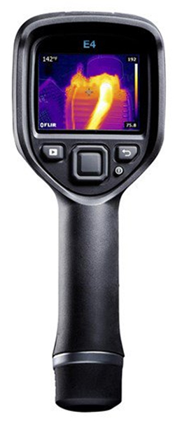 Featuring a 4,800 (80 x 60) pixel IR resolution, a 20 degrees C to 250 degrees C temperature range, and ±2 percent or 2 degrees C accuracy, the FLIR E8 features a compact, rugged and user-friendly design, a vivid 3" color LCD display, wide-angle autofocus lens, intuitive camera controls, and an on-board 640x480-pixel digital camera.