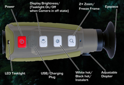 - Three selectable display palettes – White Hot, Black Hot, and the powerful Instalert™ detection palette provide excellent image detail in a variety of environments
