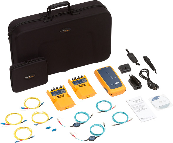 1 Versiv Remote, (2) CertiFiber Pro Quad OLTS modules, SC/LC EF-compliant MM TRC Kit 50 µm, SC/LC SM TRC Kit, TRC Carrying Case, (2) LC/LC Simplex Adaptors, (2) HandStraps, (2) Shoulder Straps, Large Carry Case, Versiv Open Source Software CD, AC Chargers, Statement of Calibration and Getting Started Guide.