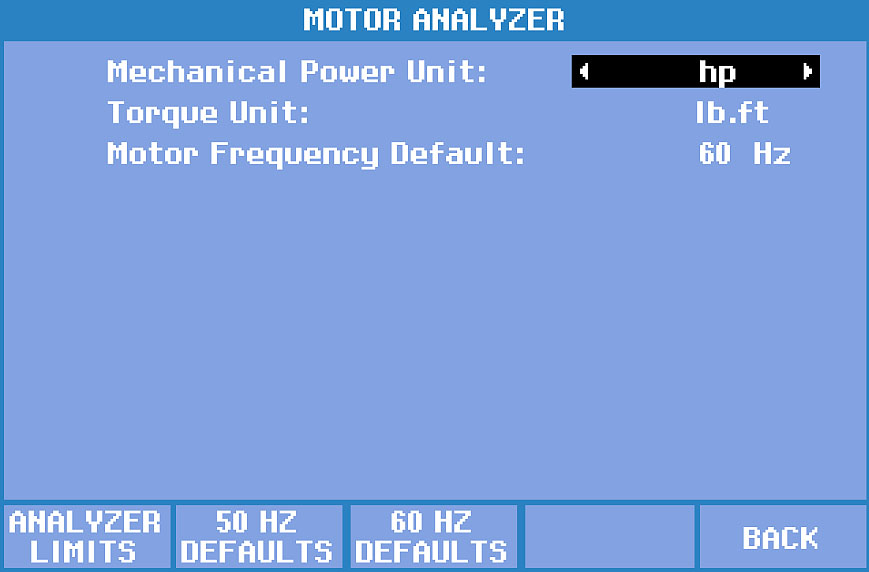 For mechanical power you can instantly view the mechanical output power along with motor torque and speed. The mechanical output power is instantly compared with electrical power to provide you with live efficiency measurements. With this feature you can easily measure machine performance during each operation cycle.