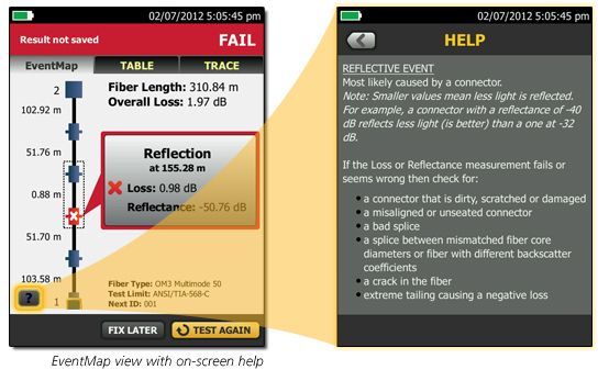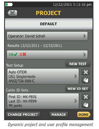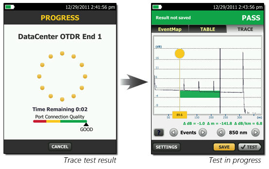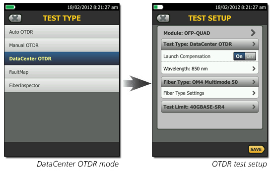 • "DataCenter OTDR" configuration to effectively test datacenter fiber with minimal set-up and trace time