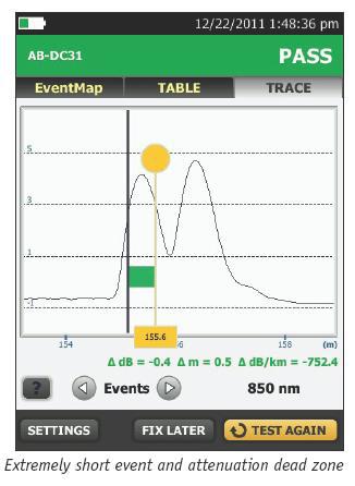 • Ultra-short dead zones to analyze datacenter fibers with short fiber patch cables and dense connectors