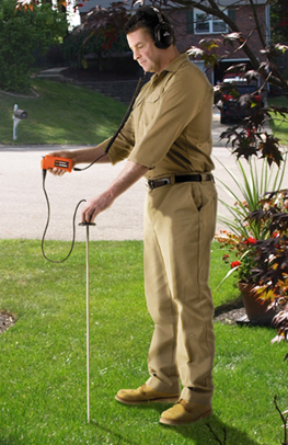 Finding the leak starts with a quality Ground Sensor. It locates leaks through hard surfaces, concrete,tile, etc. Threaded nipple accommodates sectional probe rods or magnet. Wind proof, shock resistant housing protects against handling noise interfering with locating process.