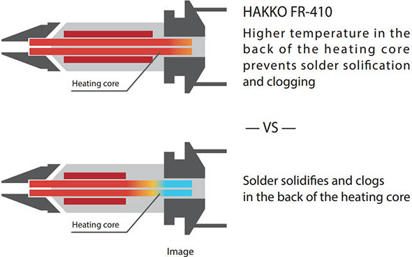 Delivering nearly three times more heating power than previous models, the FR410 is excellent for desoldering components on multi-layer circuit boards, including those with difficult to reach areas and narrow spaces.