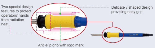High heat capacity soldering iron intended for exclusive use with the compact multi-rework station, HAKKO FM-206 that enables simultaneous use of three handpieces