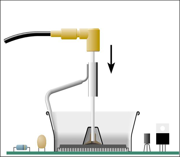 The JBC JTSE-1A comes with a complete extractor desk, containing tripods, protectors, and extractors. This enables users to quickly desolder, while simultaneously protecting adjacent components by concentrating heat on the selected area.