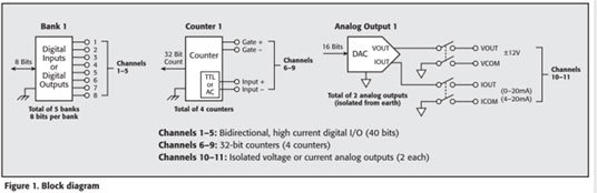 | 3750 Multifunction Control Card 40 digital I/O bits, 2 analog output channels, and 4 counters Use the Model 3750 to monitor and control your automated test system. The flexibility and speed provided by the 40 digital I/O bits, four counters, and two analog outputs make it well-suited for a wide variety of system control applications. Digital I/O