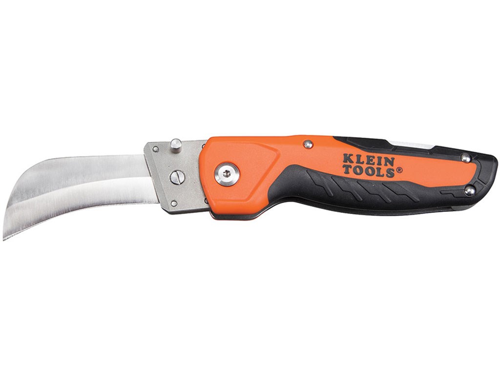 • This folding utility knife features a heavy-duty hawkbill blade that is easily replaceable to eliminate the need for sharpening