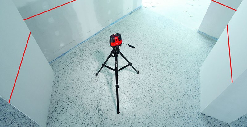 The Leica L360 is a cross-line laser level with a 360° horizontal fan angle and a 180° vertical fan angle. Like a rotating laser, the L360 projects a horizontal line 360° around the tool. Unlike a rotating laser, the beam is bright and constant when used indoors within a 50’ radius, so you can see it with the naked eye.
