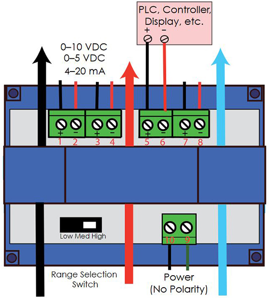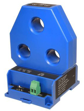 The AT/ATR-TH Series Current Transducers are the latest innovation for monitoring three-phase loads, motors, machines or buildings. The large triple-aperture solid-core design allows for a quick and easy installation. Just thread the conductors through the sensing windows (apertures) and reconnect on the other side. The transducer outputs are powered from an excitation voltage of 24 VAC or DC, or optionally 120 VAC, isolated from the monitored circuit. Three outputs are proportional to the AC current in each phase and a fourth represents the average of the three. Each are available at any time. The sensor mounts on a back panel or a DIN rail and is designed to accommodate wire sizes for loads up to 200 amps.