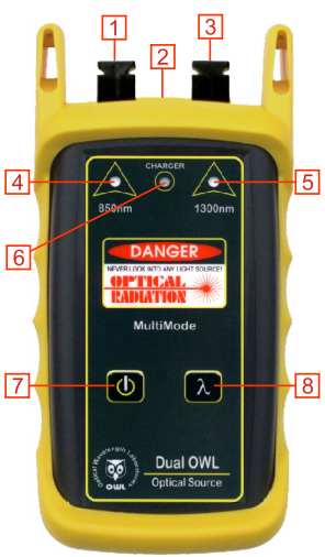 - Wavelength Select Button - Switches the unit between 850nm and 1300nm.