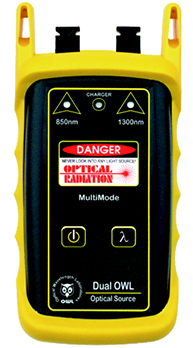 Dual OWL series multimode light sources are designed to emit a temperature-stabilized source of light to be used for optical loss measurement. The optical power emitted by the light source serves as an optical reference, which is otherwise known as the “zero” point when a power meter is “zeroed”. Optical loss measurements are useful for measuring the attenuation, or loss, of a fiber link. The loss value can then be compared to a pre-calculated link budget, which is used to determine if the fiber link will operate within the parameters of the transmission equipment.