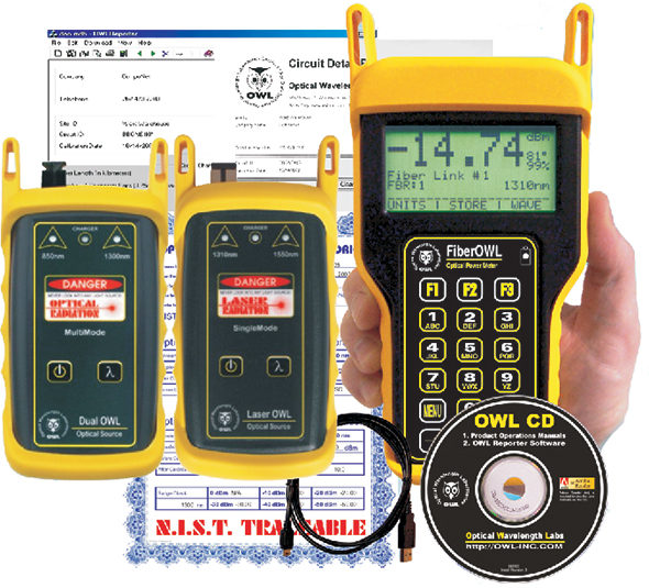 Fiber OWL 4 / Dual OWL 850 / Laser OWL 1310 Test Kit contains the tools necessary for certifying fiber optic links against a myriad of popular cabling standards in singlemode and multimode networks.