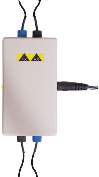 The Optic-232-R is a bi-directional Plastic Optical Fiber (POF) repeater. It is powered from a 9VDC power supply, and can extend serial data runs over an additional 100 meters.