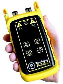 WaveSource fiber optic light sources are designed to emit a temperature-stabilized source of light to be used for optical loss measurement. The WaveSource serves as an optical reference, which is otherwise known as the “zero” point when a power meter is “zeroed”. Optical loss measurements are useful for measuring the attenuation, or loss, of a fiber link. The loss value can then be compared to a pre-calculated link budget, which is used to determine if the fiber link will operate within the parameters of the transmission equipment.