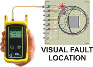 As an option, the charger port in ZOOM 2 optical power meters can be replaced by a precision-coupled Visual Fault Locator (VFL). By integrating a VFL into the power meter, troubleshooting for near-end faults can be done on the spot during testing. OWL precision-coupled VFLs offer two distinct technological advantages over traditional laser pen-style visual fault locators. First, a multi-million dollar micro-alignment machine is used to place a tiny ball lens between the laser diode and the output port, allowing for optimum precision-coupling of optical power into both multimode and singlemode fibers. Second, red lasers are susceptible to burnout, which is typically caused by power surging from the battery when the unit is powered on, especially from new batteries. Over time, these battery surges can weaken the laser, significantly limiting the laser's effectiveness. OWL optical power meters contain special circuitry that protects the red laser diode from battery power surges, ensuring a stable and consistent source of red light as well as maximizing the life-span of the laser.