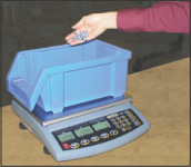 - Three-window, backlit LCD with display of weight, average piece weight and parts count