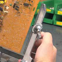 PanaVise Circuit Board Holders help you work quicker and smarter. The two moveable arms extend 6" (154mm) from the cross bar and have "V" shaped grooves which securely hold the board edge. One arm is spring tensioned to equalize holding pressure, and includes a new lever which locks the internal spring "open" for quick board insertion and removal. "V" notches positioned laterally near the arm tips securely and conveniently hold small electronic parts. All our vises and work holding devices come with a "lifetime warranty."