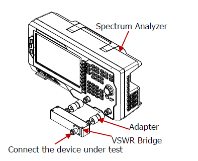 Use 2 adaptors (n male-N male) to connect the output terminal of the tracking generator and the RF input terminal of the spectrum analyzer to the IN and OUT terminal of the VSWR bridge respectively