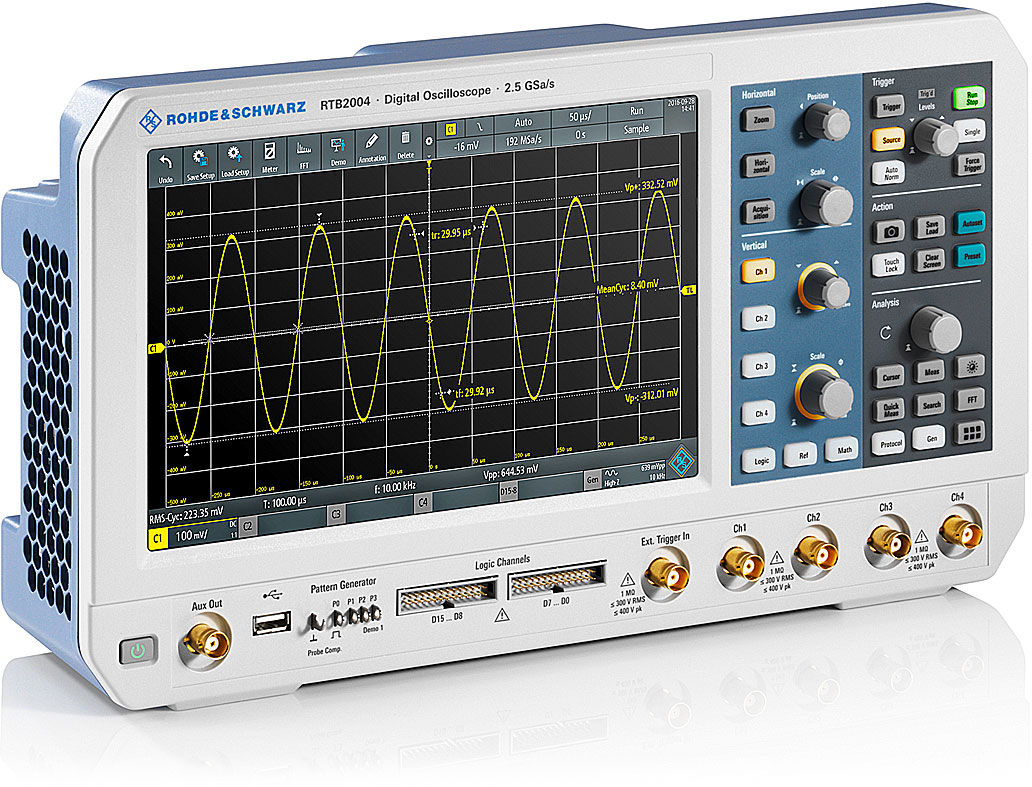Power of ten (10-bit ADC, 10 Msample memory and 10.1" touchscreen) combined with smart operating concepts make the R&S®RTB2000 Digital Oscilloscopes the perfect tool for university laboratories, for troubleshooting embedded designs during development and for production and service departments.