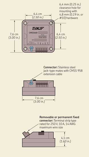 | Unless otherwise noted, the following specifications apply to a complete CMSS 68 eddy current probe system, at 23 °C (73 °F), with a –24 V DC supply and target of AISI 4140 steel, comprising of |