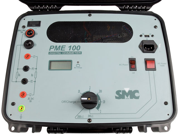 The PME-100 is a Micro ohmmeter that is used to measure accurately the contact resistances of switches, circuits breakers, motor and transformers windings and others. The measurement is performed through the current evaluation and the voltage drop on the unknown resistance, with 4 wires to prevent the influence of contact and cable resistances. The result is internally converted by a highly accurate and stable electronic circuit and is sent to the 3 1/2 digit liquid crystal display, allowing a direct reading in Ohms, milliOhms or microOhms, according to the selected scale.