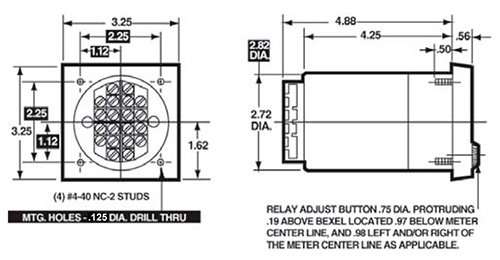 The 3300 Series meter relays offer a wide variety of applications in control, alarm, and limit use. Photo conductor sensing eliminates all interference with the indicating meter. These relays incorporate an amplifier input which drives a rugged high-torque pivot and jewel meter. Metal-cased “Rugged Seal” construction withstands rigorous environmental conditions. The die cast metal case with a drawn steel plated rear case gives complete magnetic isolation for steel panel mounting. In addition, each controller is moisture, dust, and dirt proof for use in wash-down areas. Failsafe circuitry opens output relays in the event of power failure. Two different sizes, 3-1/2" and 4-1/2", are available in both single and dual set point models. High-gain transistor switch circuitry provides accurate switching with a “dead band” of no more than 0.5% of full scale (F.S.). All DC current meters offer ±2% of full scale accuracy. This style meter is ideal for many other electrical functions.
