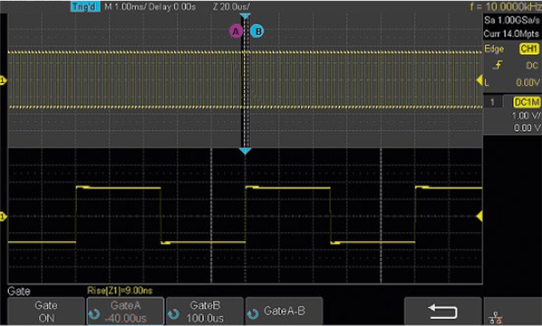 ± (1 % * Offset + 1.5 % * 8 * div + 500 uV): ≤ 1 mv/div |