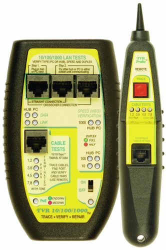 Broad capabilities: TVR10/100/1000 helps you locate faulty hubs, PCs or cable connections that are stopping or limiting the performance of your 10, 100 and 1000 Base-T LAN. You can even go inline between two LAN devices and determine the final negotiated speed and duplex of the link. Designed for both the LAN installer and repair person, it is useful documenting legacy LANs, installing and repairing LANs or adding equipment to existing LANs.