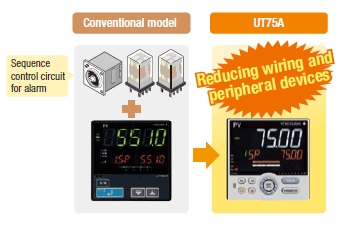 Alarm action is built by the ladder sequence program inside the UTAdvanced, thus making it possible to reduce costs. |